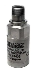 Датчики вибрации Top exit, 85 C, 4-20 mA ( 5% @ full scale) proportional to Velocity, RMS, 5.0 ips (127 mm/sec), Dynamic Velocity 100 mV/ips, (3.94 mV/mm/sec) , 1/4-28 mounting hole (stud included), 3 pin MIL-C-5015 connector.